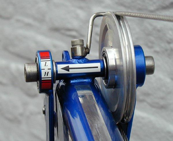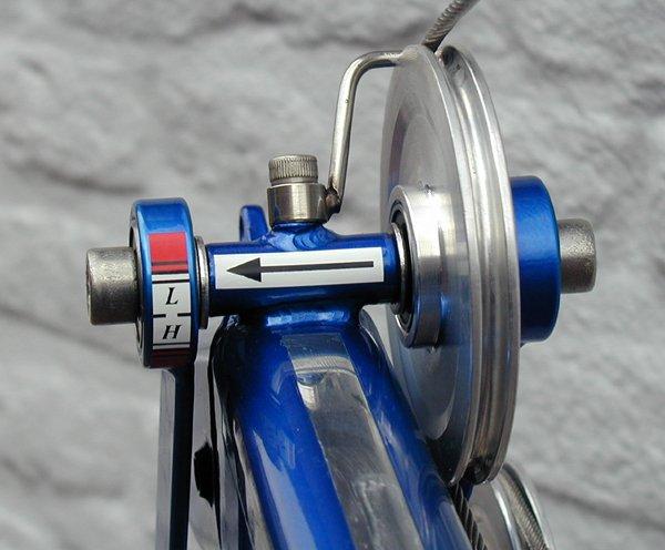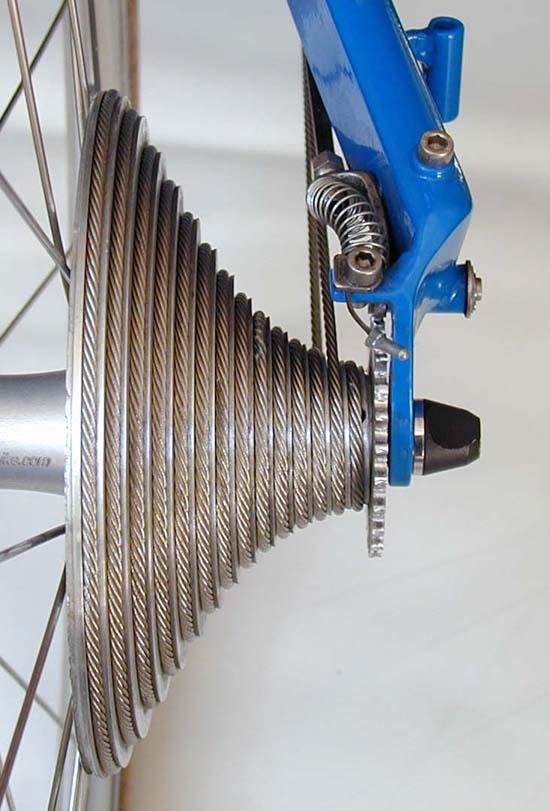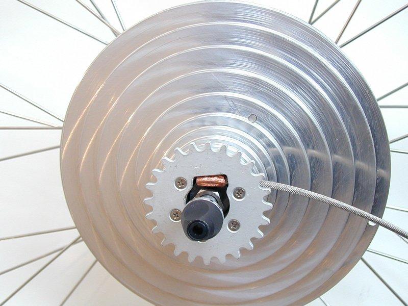 Um (im Vergleich zum Vorgängermodell) einen größeren Entfaltungsbereich zu realisieren wurde von Thys ID ein neues Schaltungssystem entwickelt; Es schaltet stufenlos in dem das Antriebsseil von der Antriebsschnecke ab- oder auf diese aufgewickelt wird. Das Antriebsseil ist mit einem Ende an der in Fahrtrichtung gesehen rechten Seite der Antriebsschnecke (kleinster Durchmesser der Antriebsschnecke) befestigt (linke Abbildung).