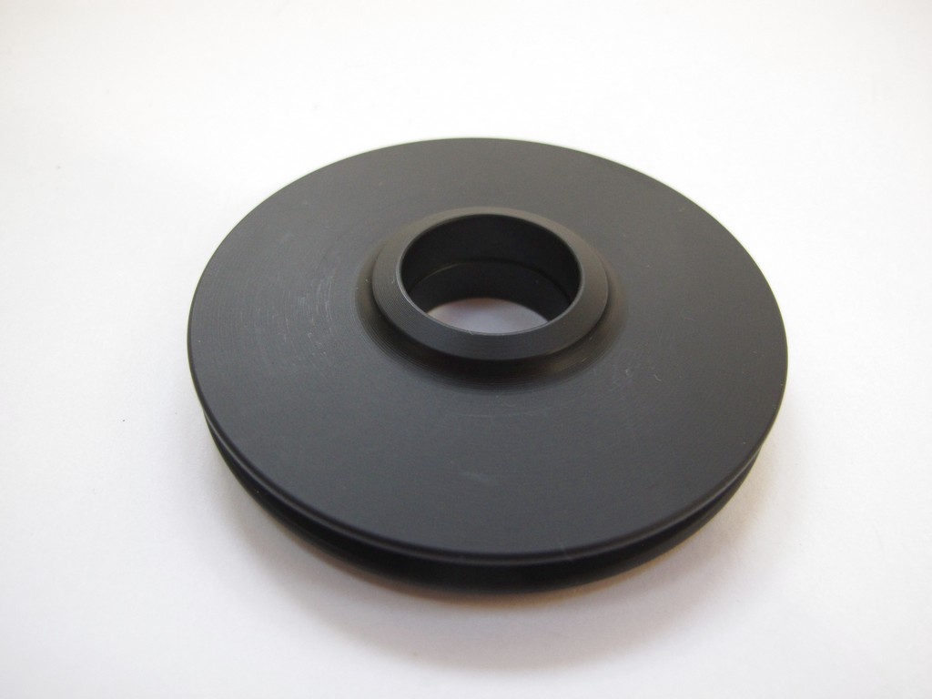 Diese Rolle wird als untere Umlenkrolle des Auslegers verwendet. Sie braucht keine Öffnung zum Auflegen/Abnehmen des Seils.