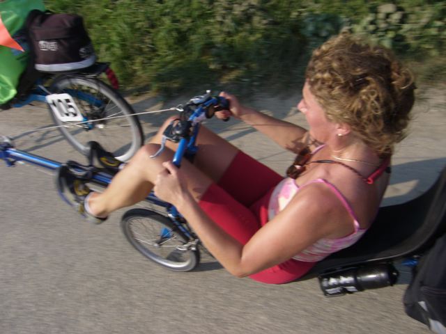 Angelique on her low rowingbike.