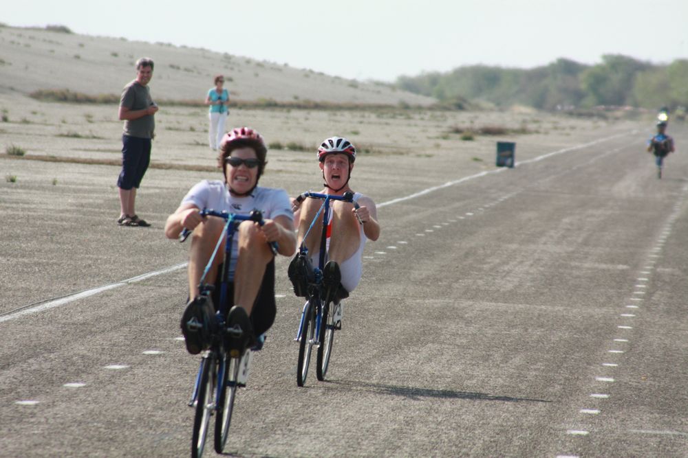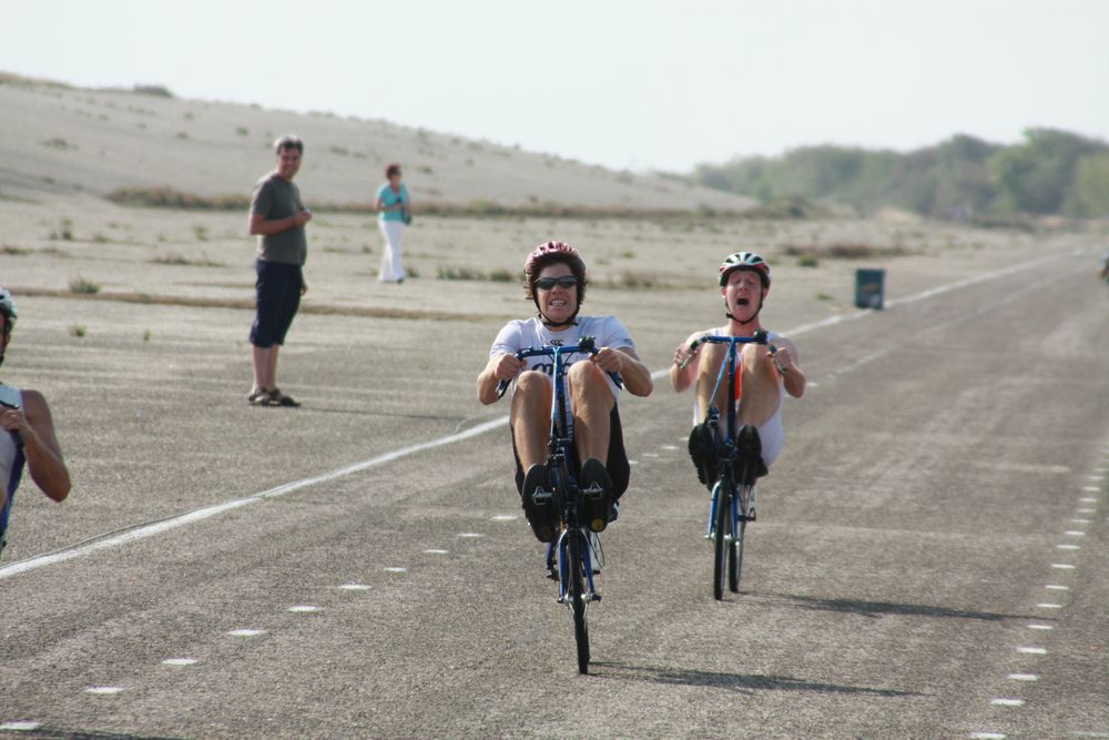- Eindsprint op de 80 km race van links naar rechts: Derk Thijs, Thijs Bosgoed en Menno van Blitterswijk