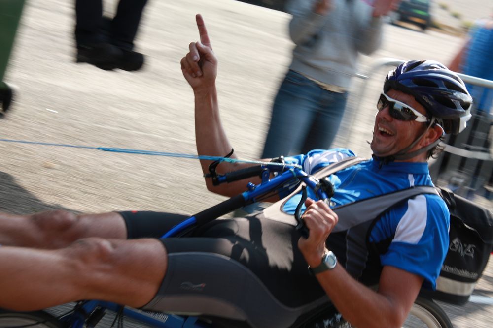 - Andre Davidse komt zeer tevreden als 4e over de finish van de 80 km. Als je niet meesprint kijk je blijkbaar vrolijker op de meet…