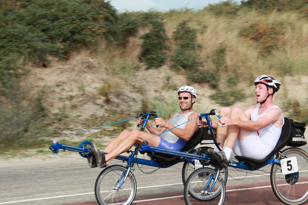 - Tijdens de long distance is er nog lucht voor een praatje tussen Derk Thijs (links) en Menno van Blitterswijk