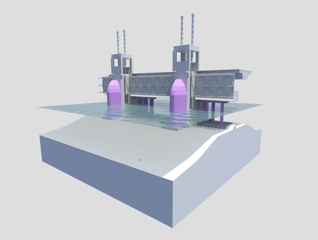 Compensation for the loss of waterflow (due to energy harvesting) by streamlining the bottom and eventually the columns of the Oosterschelde storm surge barrier. Crazy enough this very simple solution has not been thought of before. The los of water flow was the reason every official mentioned up till now as a reason not to place Energy turbines all over the barrier.