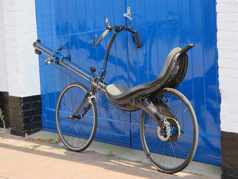 A carbon 209 equipped with a carbon 24’’ front fork, 24 ‘’ front wheel with 24 aero-spokes, Ertro 571 rear wheel with 24 aero spokes and narrow fast high pressure tires.