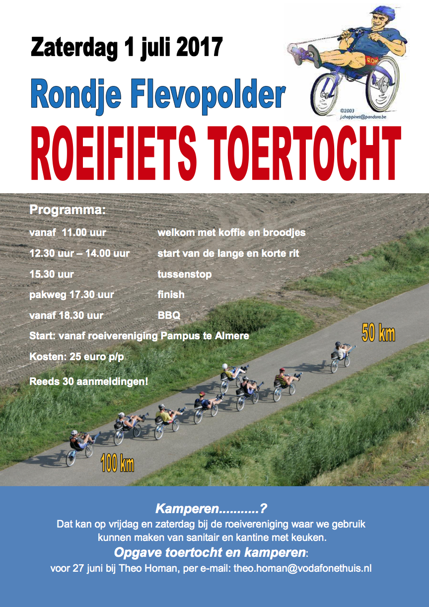 For this years rowingbike tour in Almere we already have over 30 participants. Preparations are on going, one week before the tour gpx files will be available for the participants. There will also be a guide on front and on rear of the pack so you will have no problems finding your route.