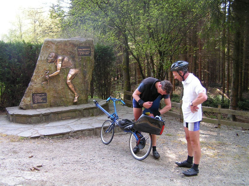 Regelmatig moeten we stoppen en ik moet twee keer overgeven. Onder uit mijn tenen komt het, dieper en dieper en het is zuur, zo vreselijk zuur. Ik heb zelden zo’n smaak in mijn mond gehad en ben blij dat we rug aan rug zitten op de tandem. Richard moet andere fietsers te woord staan, mij in de gaten houden en zich ongerust maken. Niet zo heel gek dat de fiets hem even ontglipt, verkeerd terecht komt en het stuur afbreekt. Op dat moment sta ik met mijn hoofd tegen een verkeersbord de laatste beetjes gal eruit te persen. Waterloo ligt voor mij nu in de buurt van Brest en dat zal voorlopig niet veranderen.