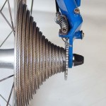 Om een grotere Snek en daarmee een groter versnellingsbereik mogelijk te maken is het CVT-systeem geïntroduceerd. Er wordt hierbij geschakeld wordt door de aandrijfkabel, die nu aan het kleine uiteinde van de Snek vast is bevestigd, (foto 10) verder op of af te rollen. Als je de kabel afrolt kom je in een zwaarder verzet (foto 11) als je hem verder oprolt kom je in een lichter verzet (foto 12).