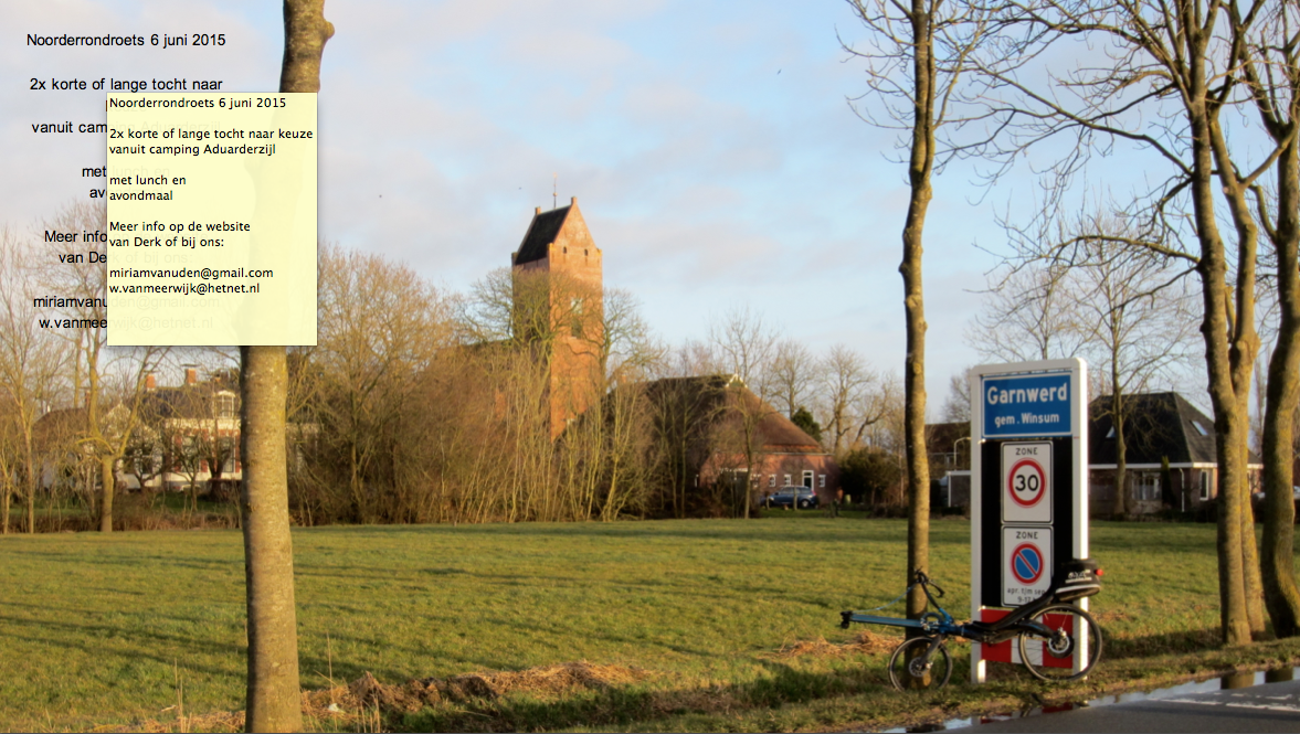 De jaarlijkse roeifietstoertocht is ditmaal in Groningen, op zaterdag 6 juni 2015.